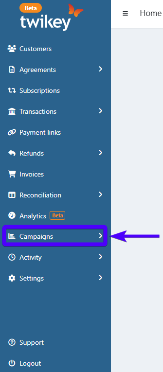 - Click on Campaigns on the sidebar.
