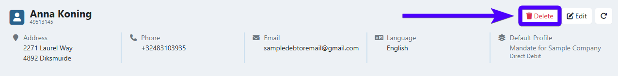 - Navigate to the customer details interface of the customer that you wish to delete.