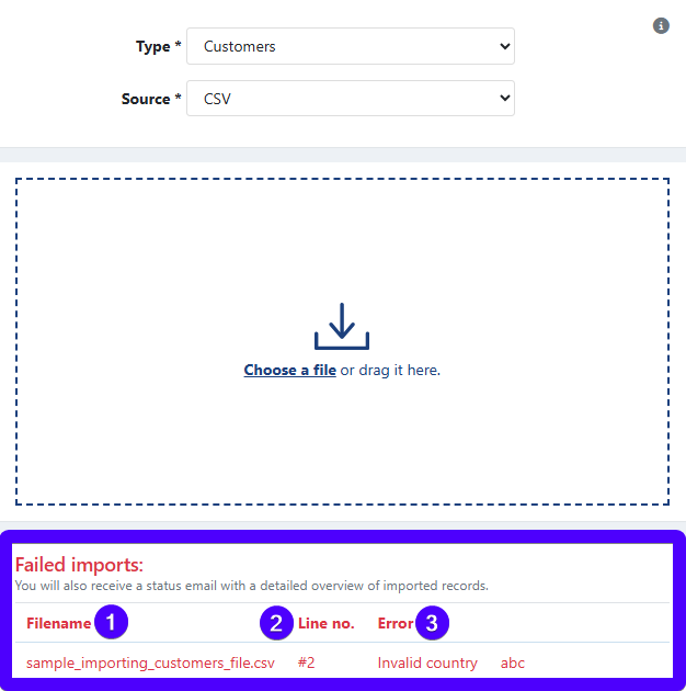 We recommend you to always fill in the cells under the customerNumber and the email headers. This will make identifying customers much easier.