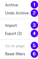 - Utility buttons — create, send, import, export, and archive.