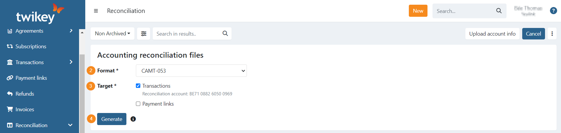 Generating reconciliation files gives you the possibility to keep your accounting up to date more easily.