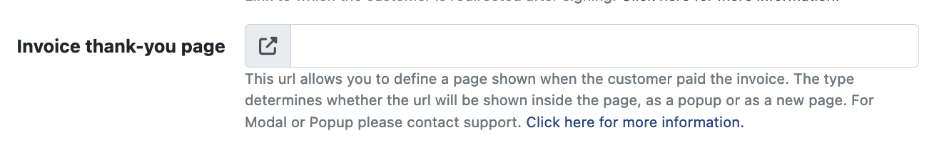 The invoice Thank-you page allows you to define a page shown when the customer paid the invoice.