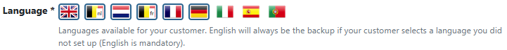 In this configuration option, you can see & select/deselect the languages that are used for this profile. These settings determine which languages are available when sending communication (for example: via email or SMS) to your customers.