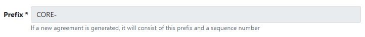 In this configuration option, you can see this profile's prefix. A prefix is used to name an agreement when they are generated automatically. This is especially useful to identify agreements if they are generated automatically and in a large quantity, as they will all have the same prefix in their name. Click here to learn more about it.