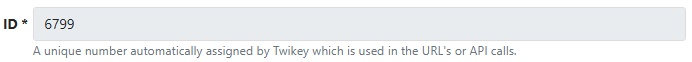In this configuration option, you can see this profile's ID. A profile ID is a unique number that's automatically assigned by Twikey and is used in URL's and API calls. A profile ID can't be changed.