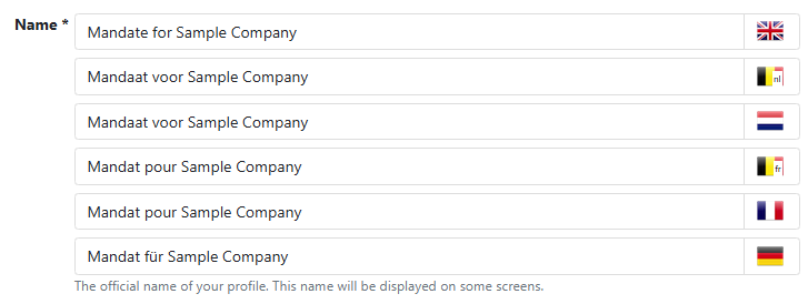 In this configuration option, you can see this profile's creditor-ID. A creditor-ID is your organization's unique ID for collecting SEPA Direct Debit payments. Normally, you get a creditor-ID from your bank.