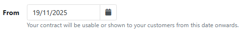 In this configuration option, you can see and edit the start date of this profile's validity period (and all of the agreements that fall under this profile's umbrella).