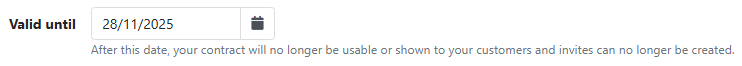 In this configuration option, you can see and edit the end date of this profile's validity period (and all of the agreements that fall under this profile's umbrella).