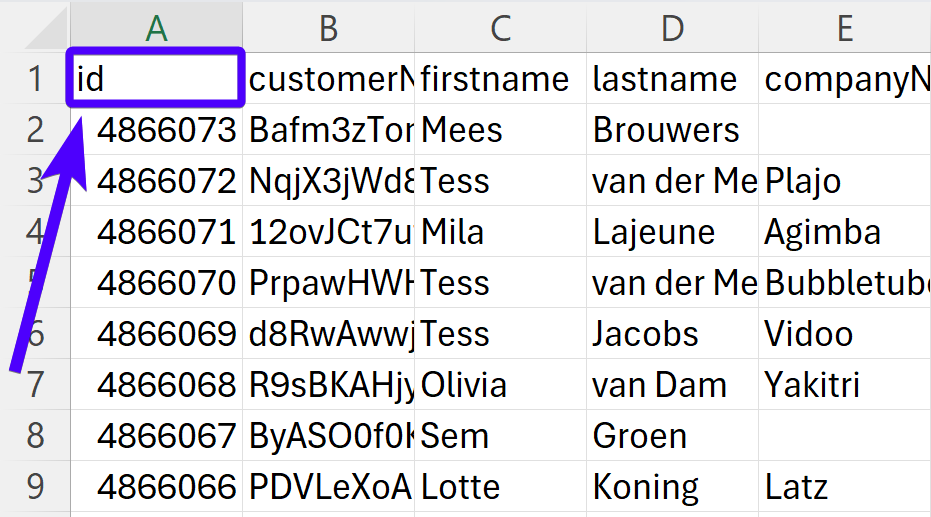 We recommend you to always fill in the cells under the customerNumber and the email headers. This will make identifying customers much easier.
