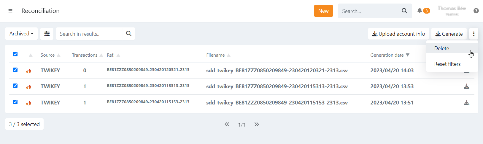 You can opt to remove reconciliation files to either just remove them or generate them again in the same or a different format.