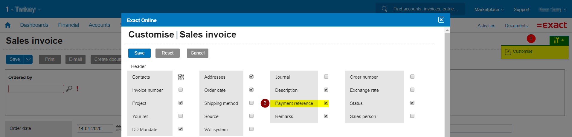 Enable the option 'Payment reference' (2) and Save.