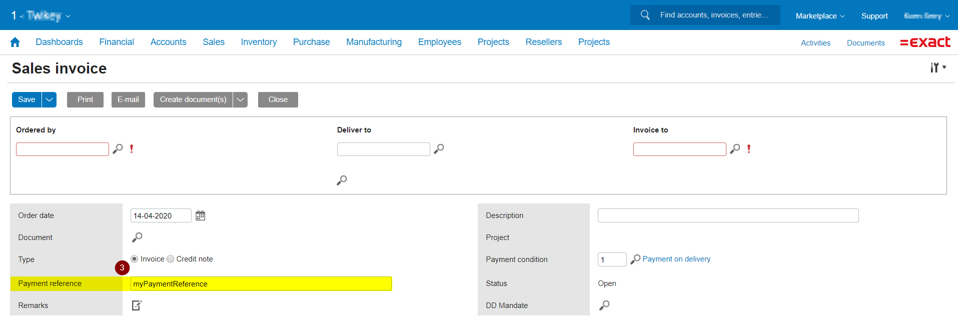 When creating an invoice fill in the field 'Payment reference' (3)