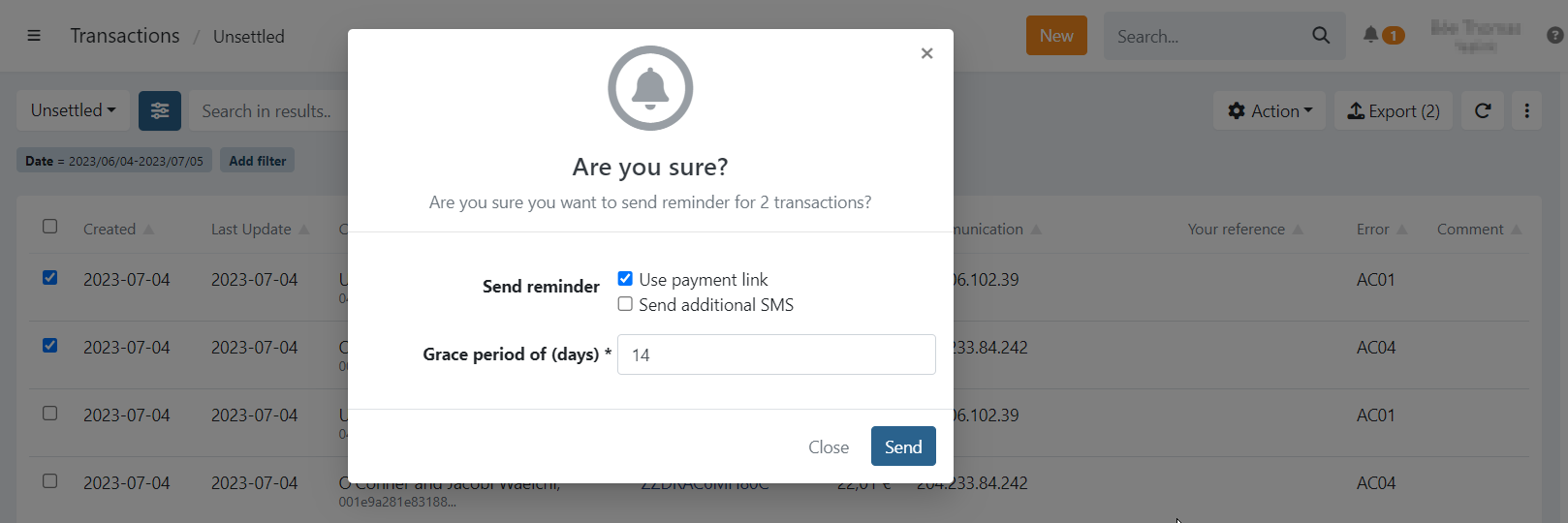 Bulk actions allow you to apply the same follow-up to multiple transactions at once.