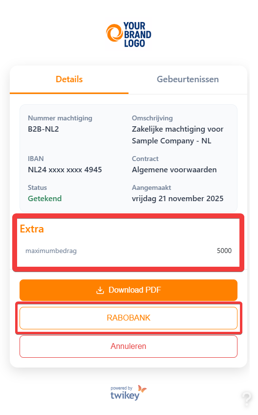 Wanneer u een B2B-eMachtiging ondertekent in uw online bankomgeving, kunt u een maximumbedrag voor incasso instellen.