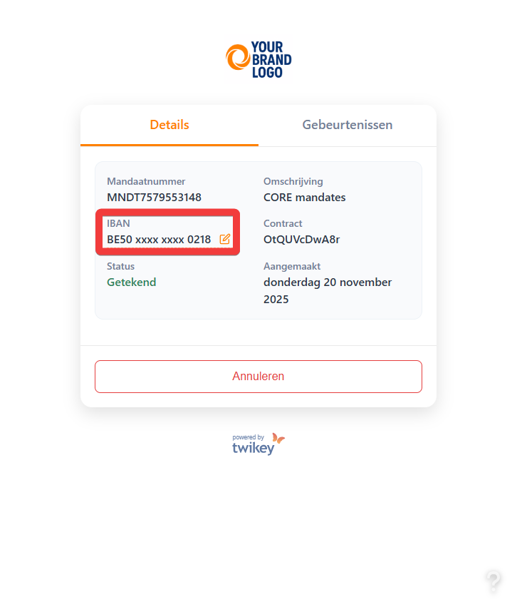 Let op: Voor B2B-mandaten is het niet mogelijk uw rekeningnummer te wijzigen. In dat geval, neemt u contact op met uw leverancier en ondertekent u een nieuw mandaat.