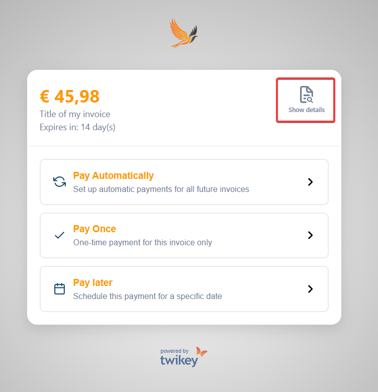 If your supplier has attached a PDF invoice, you can access it directly from the Paypage.