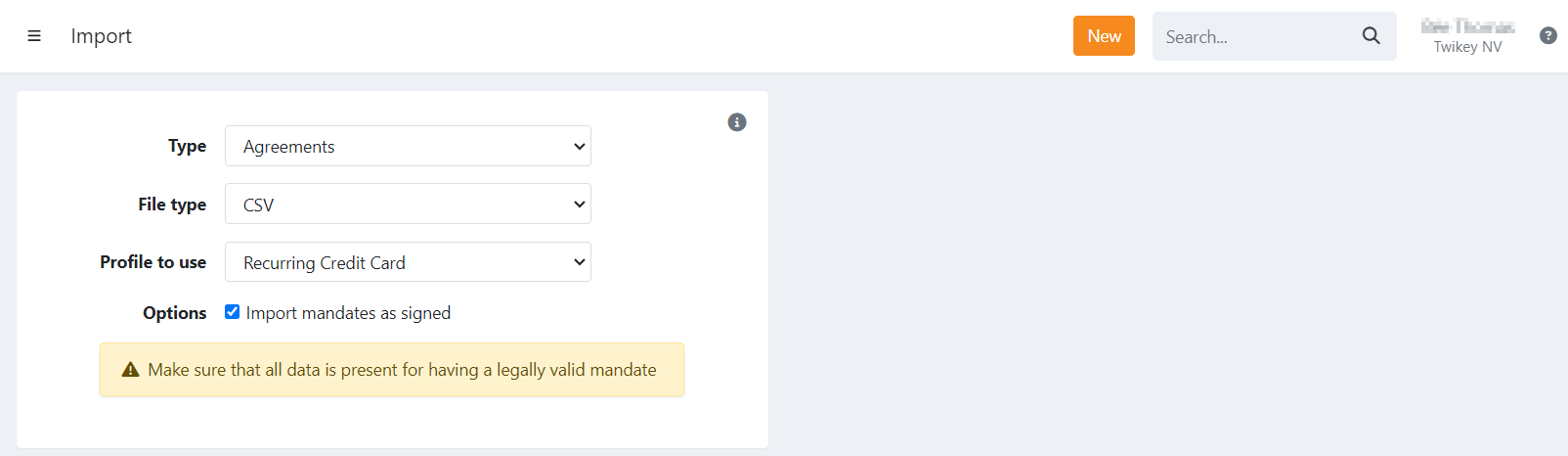 When you already have credit card agreements via your payment provider and want to import those in Twikey
