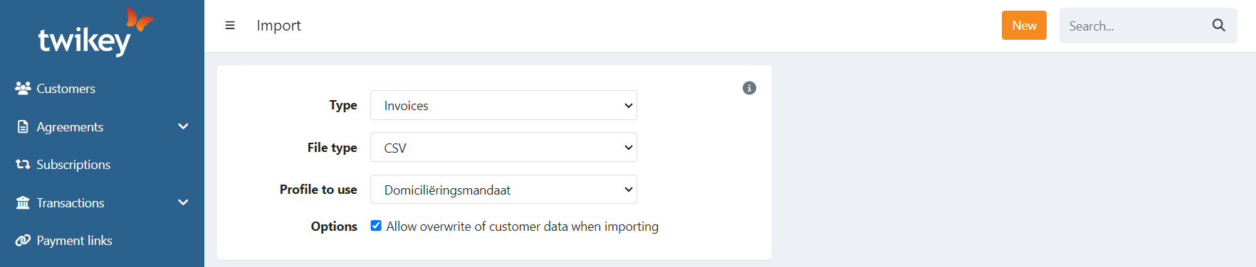 The use of a customer number is strongly recommended when importing invoices.