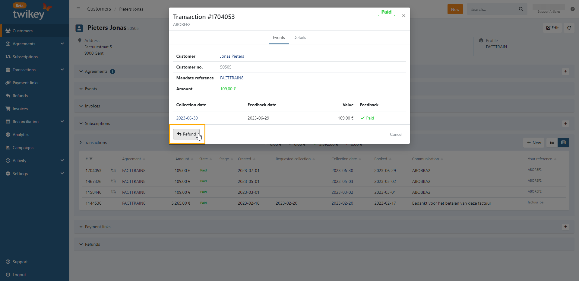 specifications. Twikey returns an error when your provider does not accept the refund you are trying to execute.